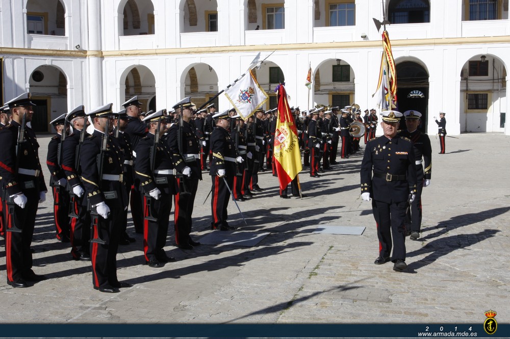 El acto se inició a las 11:30 horas con la incorporación de la Bandera del Tercio del Sur con los honores de ordenanza de la Fuerza, que estuvo compuesta por una Escuadra de Gastadores, la Unidad de Música y Banda de Cornetas y Tambores, una sección de la Unidad de Seguridad de la Base Naval de Rota, una sección de la Compañía de Plana Mayor y Servicios, una sección de la Compañía de Seguridad, una sección de la Compañía de Policía Naval, los Equipos Operativos de Seguridad (EOS) y la Unidad Cinológica.