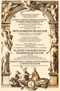 Desde el próximo 1 de febrero y hasta el 15 de marzo, la Hermandad de San José celebrará en la Iglesia Mayor los tradicionales "Siete Domingos de San José" que preceden a la Solemnidad de Su Onomástica.