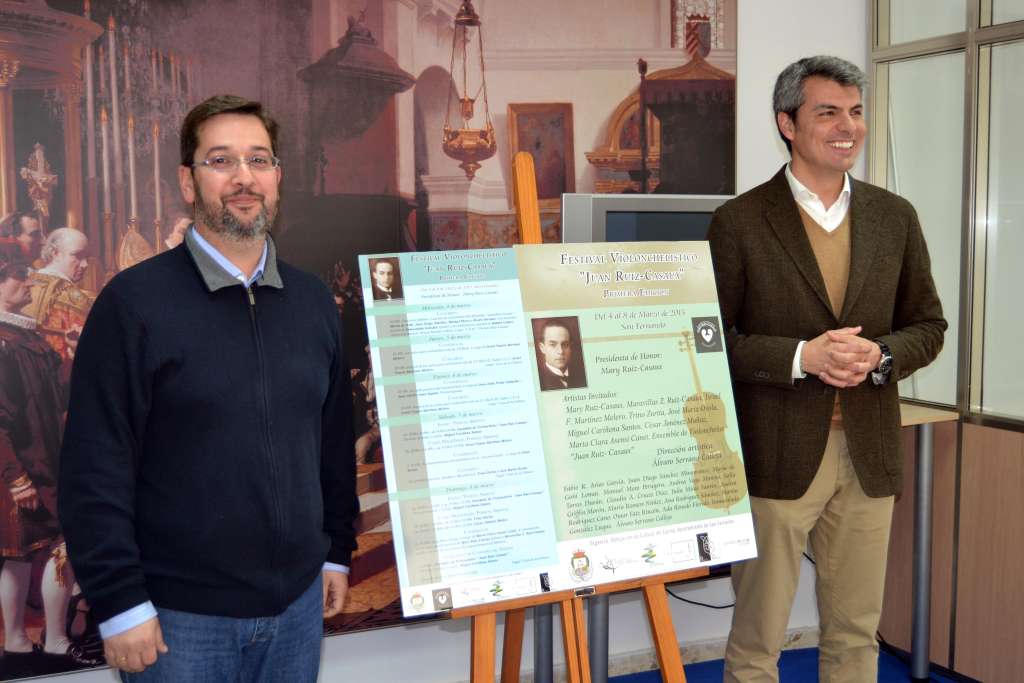 violenchelo juan ruiz casauxEl violonchelo tomará protagonismo en el mes de marzo en San Fernando. El delegado Municipal de Cultura y del Área de Promoción de la Ciudad, el andalucista Fran Romero, y el director del Ensemble de Violonchelos Juan Ruiz-Casaux, Álvaro Serrano Calleja, han presentado esta mañana el I Festival Violonchelístico Juan Ruiz-Casaux, que se celebrará en San Fernando del 4 al 8 de marzo. Este festival está organizado por la Delegación Municipal de Cultura y cuenta con la dirección musical de Serrano Calleja. Mary Ruiz-Casaux, hija del maestro que da nombre a este festival, se desplazará desde Madrid para actuar como Presidenta de Honor del mismo.