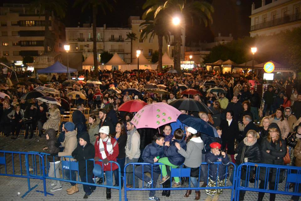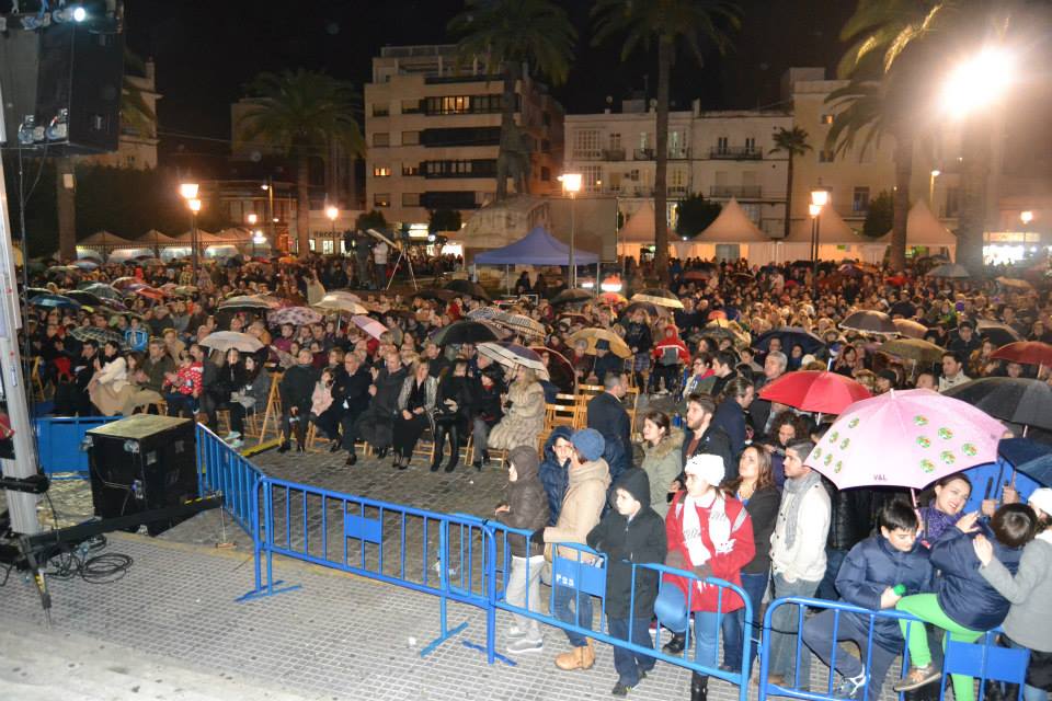 Los distintos personajes que han marcado una época chirigotera con el Selu salieron al escenario. Además de 'Viva La Pepi' (2012), 'Los Lacios' (1995), 'Los Borrachos' (1992), 'Los Enteraos' (2009) y 'Lo que diga mi mujer' (2004) desfilaron por el escenario a falta de un truncado final por la lluvia. Así lo dijo el pregonero, con la lluvia no sacó los tipos de la chirigota de 2015 'Ahora es cuando se está bien aquí'. Y bien no se estaba por la débil lluvia, pero continua, aunque la gente aguantó estoicamente en sus sillas con paraguas o metidos bajo los toldos de la Plaza del Rey.