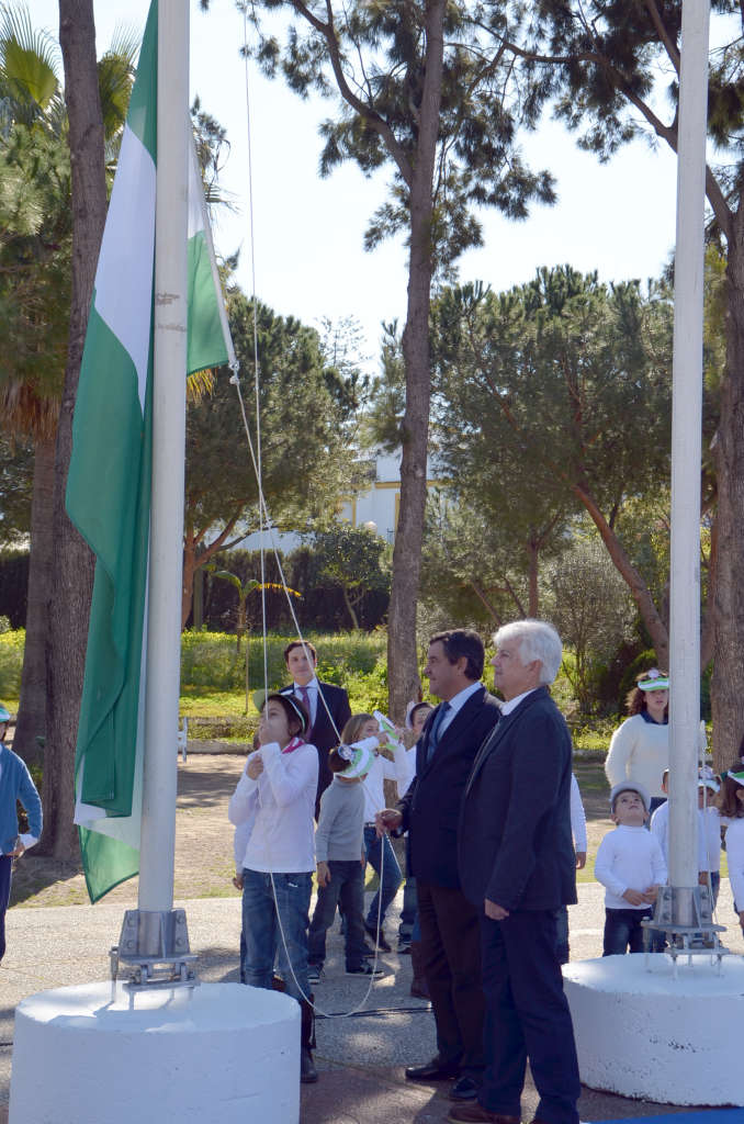 Acto seguido se celebró en el patio del centro escolar un acto institucional donde los alumnos demostraron sus habilidades artísticas bailando, cantando, tocando la flauta y recitando poesías alusivas a nuestra comunidad autónma. Posteriormente se izaron las banderas de España, Andalucía y San Fernando. El alcalde también recibió una serie de obsequios tanto de parte del centro como del AMPA.