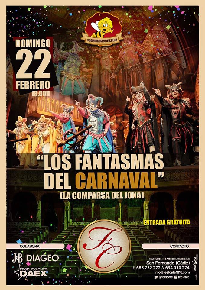 El otro gran encuentro se producirá en el mismo Feel San Fernando al día siguiente, el domingo 22, con ‘Los Fantasmas del Carnaval’. La comparsa del Jona comenzará su actuación a partir de las 18:00 horas de la tarde contando con la colaboración, como siempre, de JB, Diageo y Producciones Daex.