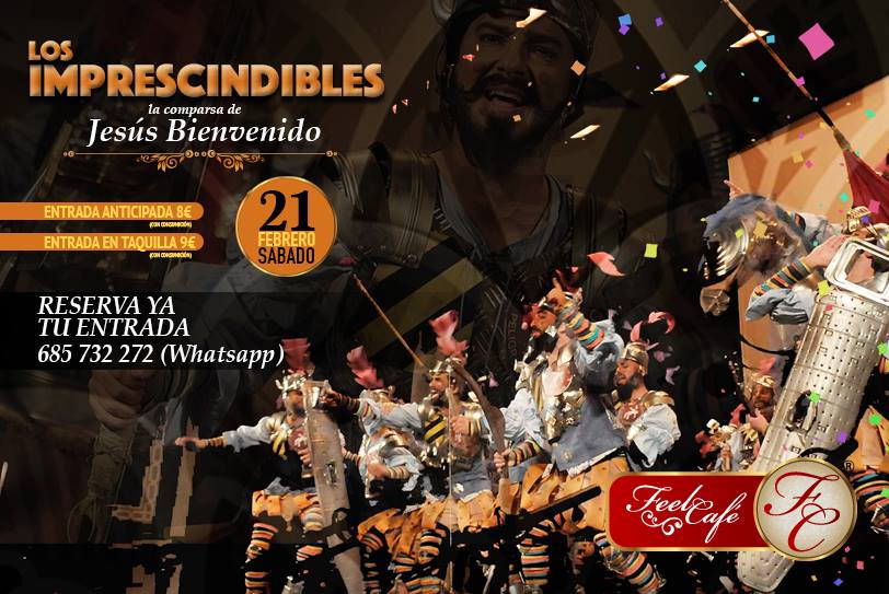 Y este fin de semana llega cargado de fuerza porque no es una, sino dos las citas que la dirección prepara de cara tanto al sábado como al domingo. La primera de ellas no es otra que ‘Los Imprescindibles’, la comparsa de Jesús Bienvenido. Tras pasar por el Gran Teatro Falla, y diversos escenarios de Cádiz como el barrio del Pópulo, tablao de San Francisco, La Viña y El Mentidero llegarán con fuerza al Feel Café a partir de la medianoche.