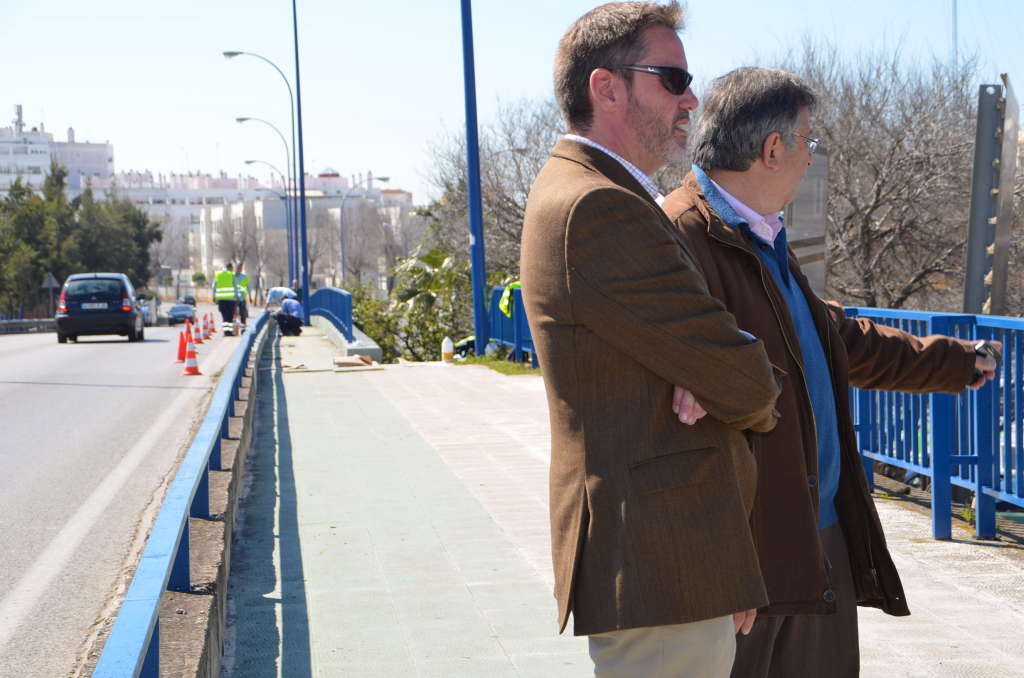 El teniente de alcalde de Infraestructura, Vías y Obras del Ayuntamiento de San Fernando, Pascual Junquera, y el delegado de distrito, Daniel Nieto, informaron que se está procediendo a las labores de mejora del puente Jesús del Gran Poder.