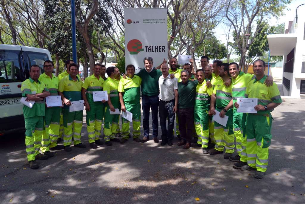 Jardineros preparados para entenderse con las personas sordas. Así con los de San Fernando. El primer teniente de alcalde y delegado General del Área Municipal de Sostenibilidad Ambiental, el andalucista Fran Romero, y el delegado Municipal de Parques y Jardines, el andalucista Manuel Gómez Piñero, presidieron el viernes en el Parque Almirante Laulhé la clausura del curso de lenguaje que han recibido los trabajadores del Servicio Municipal de Jardines y que se ha impartido con la estrecha colaboración de la Asociación de Personas Sordas de San Fernando (APESORISLA). El acto de clausura también contó con la presencia del Presidente de APESORISLA).