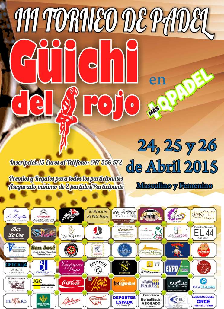 Se trata del III Torneo de Padel organizado por El Güichi del Loro Rojo, conocido establecimiento hostelero de la ciudad, en colaboración con el club Más Q Pádel. Entre sus patrocinadores se encuentran casi medio centenar de conocidas firmas de la ciudad, entre ellas El Morgan, Mullenbach, Vinoteca el Negro, IslaPlagas, El Patio de Benítez, Latinos o este periódico digital, www.elcastillodesanfernando.es, que no han querido dejar pasar la oportunidad de apoyar un torneo, destinado tanto a hombres como a mujeres, donde cada uno de los participantes jugará un mínimo de dos partidos.