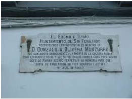 19. El Ayuntamiento concedió esta Placa que figura colocada en la parte superior de la fachada de la Casa del Turco, donde vivió Gonzalo A. Olivera Manzorro, para destacar y premiar su gran labor pedagógica en favor de la cultura patria.