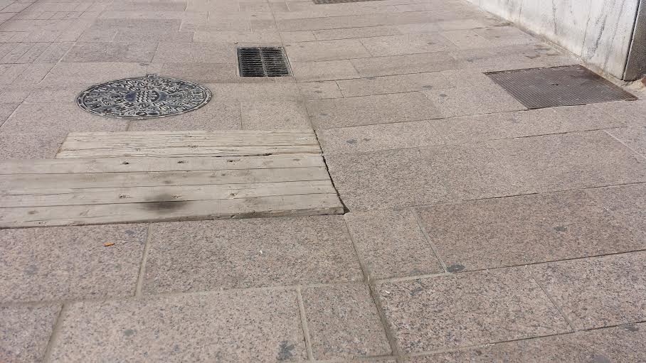Y añade que también "hay que denunciar que los boquetes que recientemente se han realizado junto a los armarios metálicos, en concreto el que está justo delante de la Compañía de María, lo han tapado con maderas, unas maderas que tan solo en una semana ya están curvadas y sobresalen del nivel del suelo, provocando también accidentes como el ocurrido la pasada semana, donde una señora tropezó, cayéndose al suelo y sufriendo contusiones en brazo, caderas y cara".