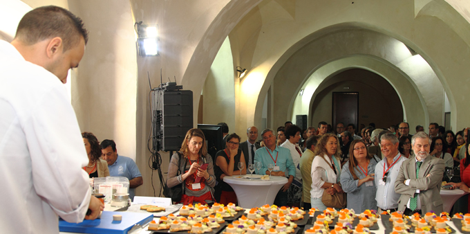 Para la puesta en valor de la gastronomía de la provincia, la organización del congreso configuró un interesante “Taller Gastronómico de Cocina Salinera”, en el que profesionales del sector cocinaron en vivo diversos platos con productos de la zona. Frutos del mar de Cádiz como mariscos, pescado y algas así como otros productos de la zona fueron los protagonistas de esta actividad coordinada por el gastrónomo isleño Pepe Oneto. Tosta marina con huevas y plancton marino, sierra y mar de camarones, dorada ahumada con alboronia y mahonesa de algas, y piñonate de atún fueron las “creaciones salineras” preparadas por Iordan Ciprian (Restaurante La Breña), Antonio Orozco (Escuela Hostelería de Arcos), Regla Ruiz (Salina San Vicente) y Alexis García (Restaurante Atunante), respectivamente.