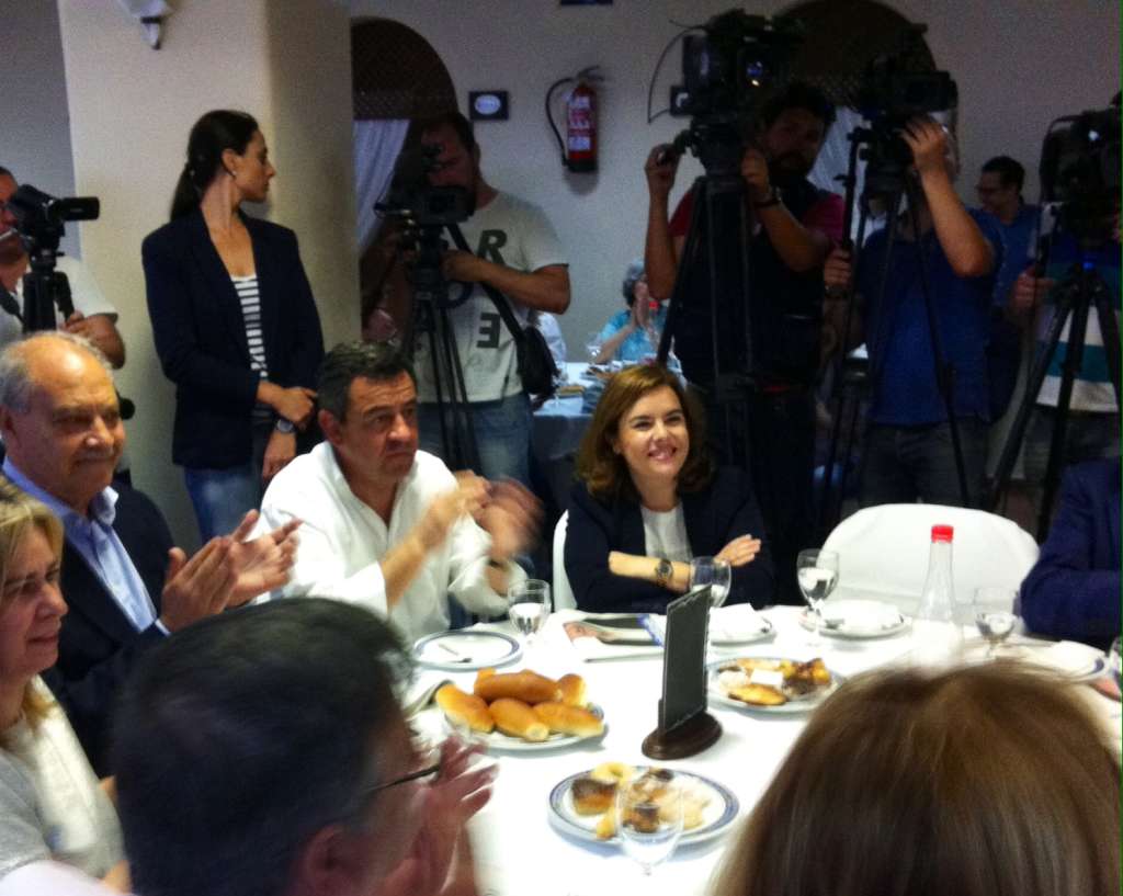 La vicepresidenta del Gobierno de Mariano Rajoy, Soraya Sáenz de Santa María, portavoz del Gobierno de España, pasa la tarde con vecinos de San Fernando gracias a una invitación de José Loaiza como alcalde y candidato a la reelección. La vicepresidenta del Gobierno ha tomado un café con varios representantes de colectivos en un conocido local de San Fernando y tras ello pasea por las calles del centro comercial isleño.