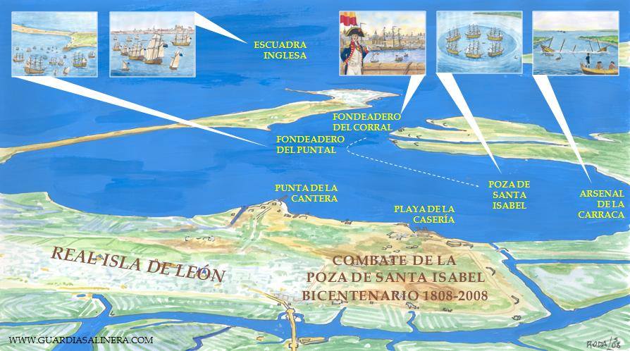 Entre el 9 y el 14 de Junio de 1808, la Armada Española se batió con la escuadra del almirante Francés Rosily frente a la costa oeste de la Real Isla de León -entre Punta Cantera y la Casería de Ossio-, en las conocidas como Pozas de Santa Isabel; un importante fondeadero dentro de la Bahía de Cádiz. Este enfrentamiento supuso una de las primeras victorias de la Guerra de Independencia Española y la más notable de las pocas batallas navales que se libraron durante dicho período.