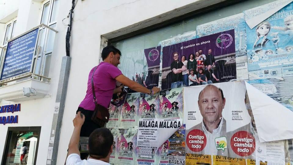Miembros de la Agrupación de Electores Sí Se Puede San Fernando, con su número 1 a la cabeza, han retirado de la ciudad los carteles de su campaña electoral.