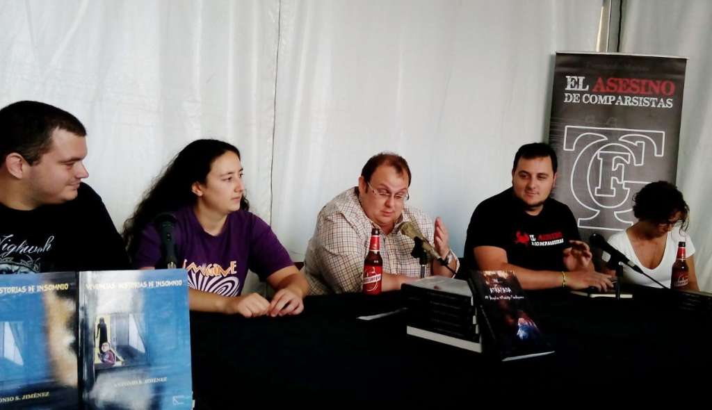 Fernando Macías (‘Asesino de Comparsistas’), M. A. Villaécija (‘Atrapada’), Carmen Moreno (‘Una última cuestión’) y Antonio S. Jiménez (‘Historias de Insomnio’) participaron así en un debate que comenzó hacia las 20:00 horas para hablar sobre el citado género en una mesa moderada por el también escritor Javier Fornell. Tras la opinión que cada uno de ellos expresó sobre los orígenes y la orientación adoptada por la novela negra, abordaron la naturaleza de los personajes: ¿metodología específica o asesino por placer? Asimismo se hizo inciso en el mantenimiento de la incógnita hasta el final, a veces, dando lugar a un final abierto para que el lector saque sus propias conclusiones.
