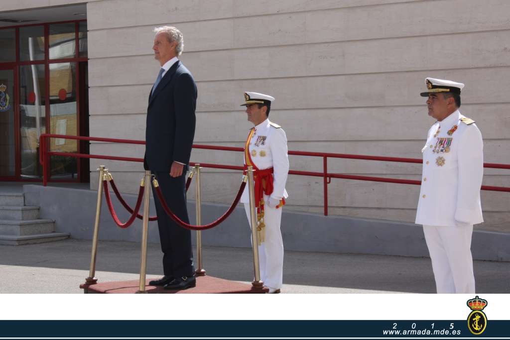 A su llegada a la ESUBO, Pedro Morenés fue recibido por el Almirante Jefe de Personal de la Armada, almirante José Antonio Ruesta, y tras recibir los honores de ordenanza en los que participó una batería del Tercio de Armada, que fue la encargada de realizar las 19 salvas de cañón, el ministro paso revista al Batallón de Alumnos.