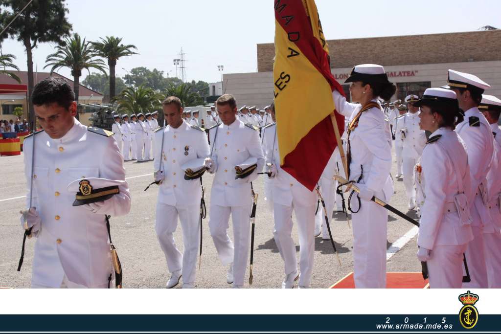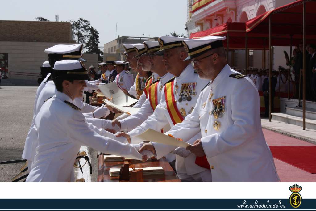 El acto se inició, con la entrega por parte del ministro del despacho a los números uno de la 76 promoción; sargento Manuel Blanco Núñez, del Cuerpo General de la Armada y al número uno de Infantería de Marina, sargento Víctor Manuel Moreno Ruiz, a los que impuso también la Cruz al Mérito Naval.