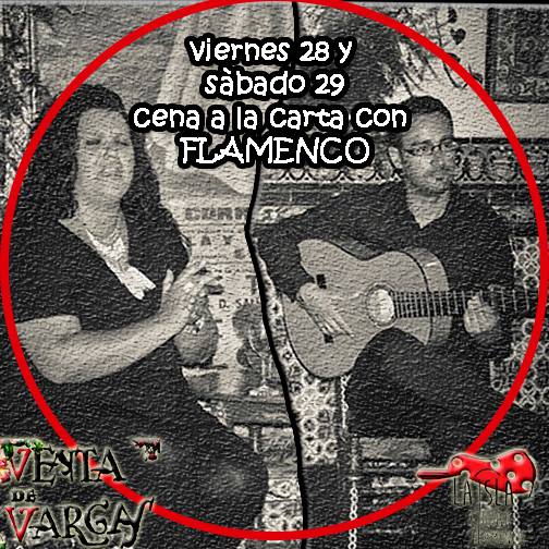 Esta noche a partir de las 22:30, cena a la carta con espectáculo flamenco en Venta de Vargas, donde Carolina Castilla al cante y Javi Sánchez al toque deleitarán con sus tablas.Carolina Castilla nació el 24 de Agosto de 1980. Empezó con 16 años entonando colombianas en bodas y comuniones, aunque su primer premio no tardaría en llegar: un cante por alegrías en la barriada de la Alegría de la ciudad con tan sólo 25 años. Es conocida también por su faceta como 'saetera'. En 2007 obtuvo su primer premio de saetas en la asociación 'Las Marismas' de San Fernando, a éste siguieron otros tantos. Ha cantado, además, en diversos coros navideños como 'Los niños de la tertulia', 'Canela en Rama' y 'Zambombeando', pero, como buena artista flamenca, destaca sobre todo por su voz a la hora de interpretar los temas más profundos.