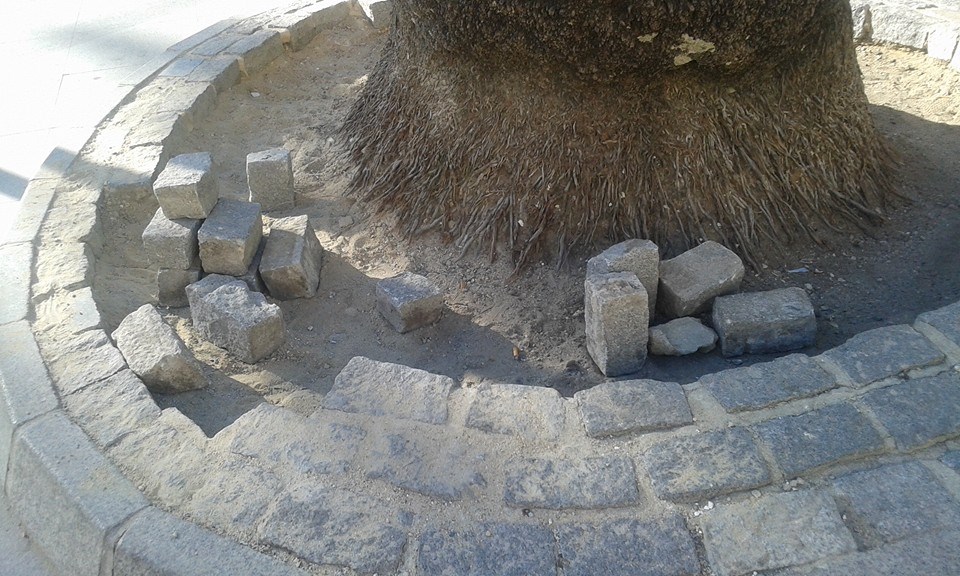 También pudimos ver adoquines sueltos en torno a las palmeras de la Plaza del Rey, peligrosos para los niños que juegan allí cada tarde. Consideramos que cualquier sitio al que vayan niños debería tener un mantenimiento especial, tanto en limpieza como en mobiliario. La Plaza de Rey siempre ha estado llena de palomas, animales que conllevan muchas enfermedades. Se sabe que "sus plumas, sus excrementos, entre otros agentes de estas aves, trasmiten hongos, bacterias y parásitos", por eso de mal nombre se las llama 'ratas voladoras', lo que requiere de una desinfección constante y, de manera periódica, hacer campañas de control para reducir su número.
