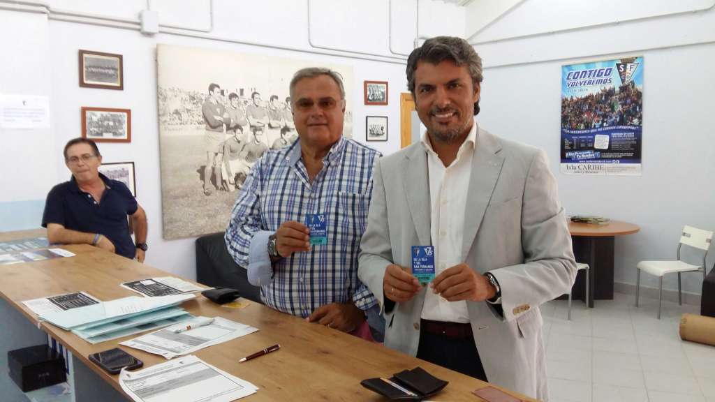 El primer teniente de Alcaldía y delegado General del Área de Desarrollo Sostenible, el andalucista Fran Romero, ha visitado la sede del San Fernando CD para renovar el abono que le permitirá apoyar al club azulino durante temporada deportiva 2015/2016 desde las gradas del Estadio Iberoamericano de la Ciudad Deportiva de Bahía Sur. Con este gesto, Romero, que recogió su nuevo carnet de abono en compañía del Presidente del San Fernando CD, Daniel Luna, anima a todos los isleños e isleñas a solicitar su abono para la próxima temporada para que el equipo azulino pueda sentir el apoyo de su afición en cada uno de los encuentros de la próxima Liga. El edil andalucista también destaca el ajustado precio de los abonos ofertados por el club para fomentar la captación de socios.