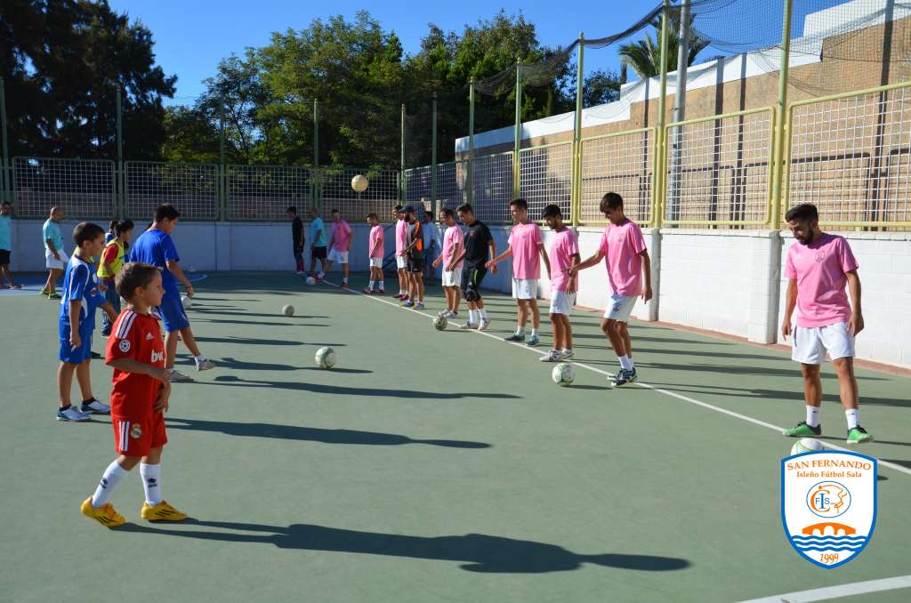 La campaña 'El Fútbol Sala en tu barrio' se ha niciado con un éxito rotundo de participación. La Barriada Madariaga acogió en este lunes a un gran número de niños y niñas que se dieron cita para disfrutar de las actividades del primer equipo de San Fernando en la categoría de la segunda división B, juegos, entrenos, pero sobre todo diversión, fueron la tónica del primer acercamiento del equipo de Gago, a los más pequeños.