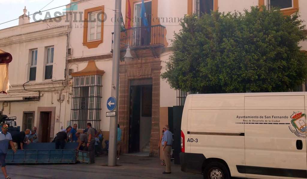 Esta mañana se han podido ver paqueteras y vehículos municipales sacando muebles del interior del Museo Histórico, donde se preven ubicar los servicios de la Alcaldía y el despacho de la alcaldesa, mientras no se ubique definitivamente en el Palacio Consistorial cuando terminen las obras de rehabilitación.