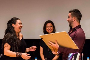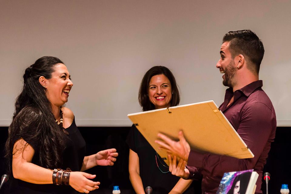 El momento más emocionante lo protagonizaron sin duda el presentador, Halle Grosso, y la propia Gema Tacón, cuando ésta, en agradecimiento por su apoyo, le hizo entrega de una ilustración con uno de los personajes de la saga 'Ancestral' en la que el escritor se encuentra actualmente trabajando.
