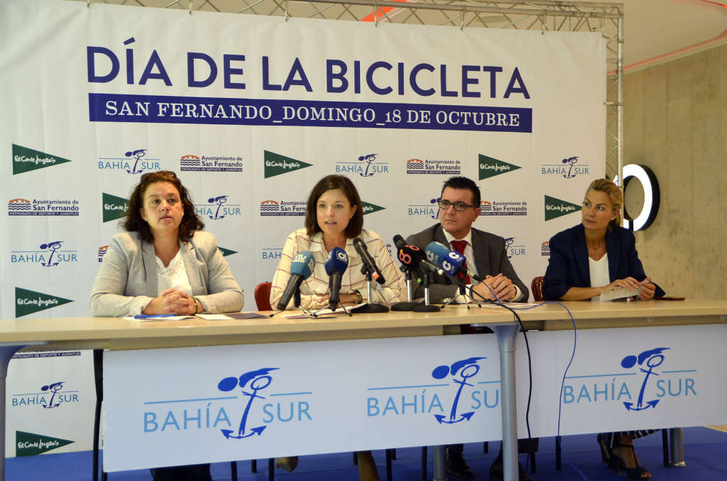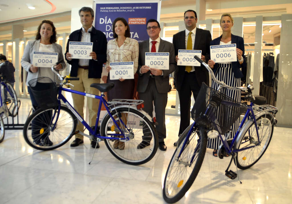 La alcaldesa de la ciudad, Patricia Cavada, y la concejala de Deportes, Maite Lebrero, han presentado esta mañana en el Centro Comercial Bahía Sur el cartel de la edición 2015 de una de las citas deportivas anuales más seguidas por los isleños e isleñas: el Día de la Bicicleta. Dicha marcha no competitiva, organizada por el Patronato Municipal de Deportes, el Centro Comercial Bahía Sur y El Corte Ingles, tendrá lugar durante la mañana del próximo domingo 18 de octubre. En el acto de presentación también estuvieron presentes el gerente del Centro Comercial Bahía Sur, Ernesto Pardo, y la representante del Corte Inglés, Isabel Mora.