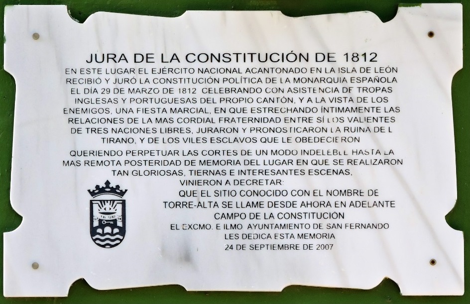 Es curioso, sin embargo, que la inmensa mayoría de estas piezas (en torno al 75%) daten de los últimas tres décadas, incentivándose, especialmente, a raíz del aniversario de los hitos constitucionales. Tanto el Real Teatro de Las Cortes -con cuatro placas pertenecientes a distintos momentos históricos- como el Puente Zuazo presentan esta 'condecoración'. Una de las menos conocidas es, en cambio, la que luce el denominado 'Campo de la Constitución', o lo que viene a ser igual, el Parque del Barrero. Aquí se procedió a la Jura de la Constitución de la Monarquía Española el 29 de marzo de 1812 con asistencia de las tropas aliadas en aquel momento, inglesas y portuguesas, por lo que se procedió, doscientos años más tarde, a perpetuar Las Cortes de un modo indeleble hasta la más remota posteridad de memoria del lugar en el que se realizaron tan gloriosas, tiernas e interesantes escenas.