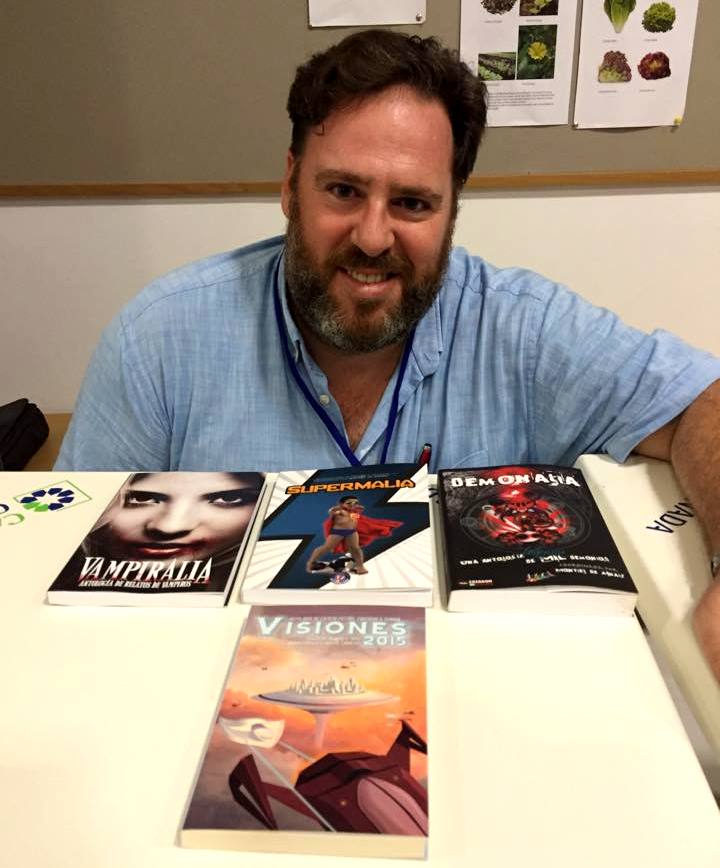 La literatura está muy presente en la vida de Enrique Montiel pese a dedicarse profesionalmente a la abogacía. Recientemente recibió la noticia de que su relato 'El mordisco de Tyson' ha sido seleccionado entre los 13 mejores del concurso 'Visiones 2015', organizado anualmente por la Asociación Española de Ciencia Ficción y Terror. Algo escéptico se aventuró a mandar un relato "inspirado en el famoso combate de boxeo entre Tyson y Holyfield, donde el primero le muerde -literalmente- la oreja a su contrincante". Sus conocidos hicieron bien en insistirle ya que "al parecer, desde el primer momento gustó al jurado". Lo mencionaron en la presentación que tuvo lugar en el festival Celsius 232, en Avilés y este fin de semana se ha vuelto a hablar de él en la HispaCon celebrada en Granada, donde ha sido tomada la fotografía adjunta.