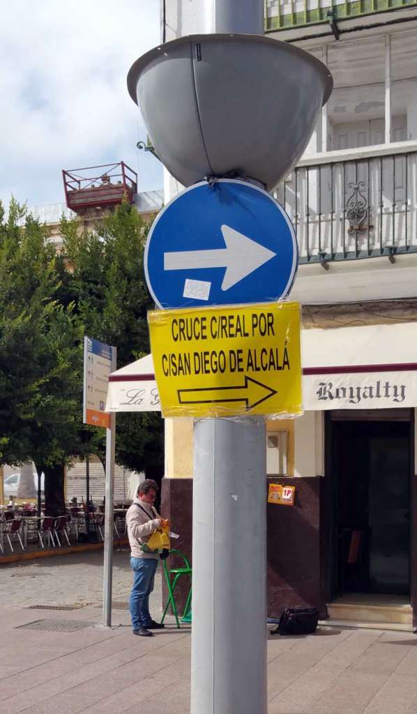 trafico direccionLas obras de Calle San Nicolás eliminan una vía de cruce de Real. Cuando empiecen las obras de la Calle San Diego de Alcalá, previstas para el 3 de noviembre, se perderá totalmente el cruce por estas calles. Pese a todo, a la salida de San Cristóbal, se ha colocado un cartel llamativo para que los conductores se den cuenta por donde circular. Una señalización más clara que los paneles instalados oficialmente como señalización de tráfico.