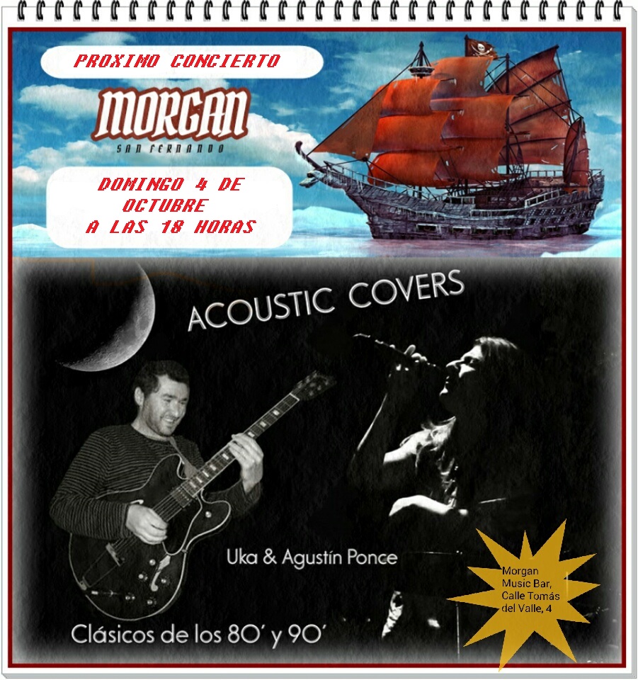 Y para cerrar la semana por todo lo alto, repiten ‘Acoustic Covers’ tras la repercusión de sus anteriores conciertos. Un clásico de esta sala que, compuesto por la isleña Uka Muñoz Pérez y Agustín Miguel Ponce Gil a la guitarra, sorprenderá con sus versiones en acústico de temas ochenteros y noventeros. Cuentan con grandes tablas forjadas tras largos años trabajando por separado, en búsqueda de su propio estilo, de su propia identidad. Elemento que ambos han compenetrado a la perfección, “de forma única”, para apelar la nostalgia entre su público con grandes temas de Tina Turner, Evanescence, Police, Us, The Police, Anastacia, Metallica, Guns’n o Roses.