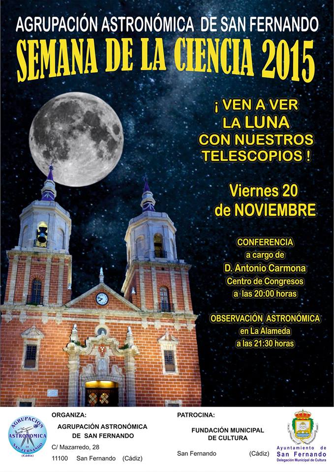 Por eso, en la línea de sacar partido a los valores fundamentales de la ciudad, están las actividades organizadas desde la Agrupación Astronómica de San Fernando cuyos integrantes, una vez más, pondrán a disposición de los ciudadanos sus equipos para observar más de cerca los astros estelares. Concretamente será el satélite madre, la luna, el que al parecer se llevará el protagonismo. Y como para interpretar hay que conocer, antes de la sesión procederá Antonio Carmona, socio de la agrupación, a pronunciar una conferencia en el Centro de Congresos 'Cortes de la Real Isla de León'.