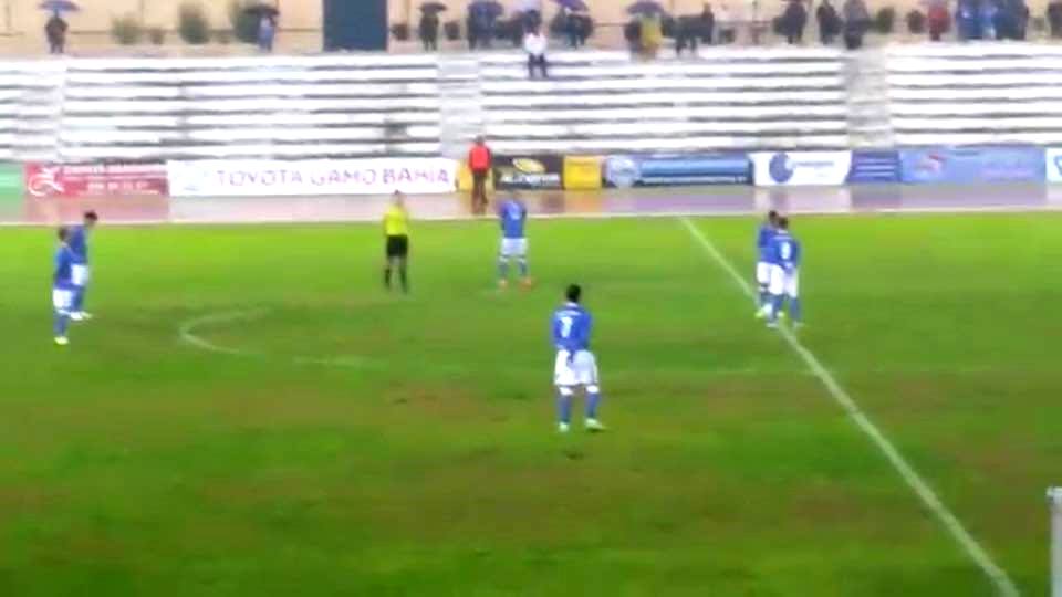 Comenzaron dominando los isleños, quienes no obstante sufrieron las primeras incursiones visitantes en el área a pocos minutos de comenzar el partido. Una lucha sobre el barro la de hacerse con el esférico debido a las condiciones climáticas. Fueron varias las intentonas atacantes que acabaron con la primera amarilla del partido, pero con suerte y mucho esfuerzo no lograron romper la barrera azulina. Gran momento el que se vivió en el estadio durante el minuto 22, cuando Tati disparó alto llegando el balón dentro del área y con lanzamiento de zurda arriba. Y así, con un penalti a favor del San Fernando, tras el derribo de Tati al superar a Iván de vaselina, marcó un golazo Ñoño a la derecha del portero. Imparable.