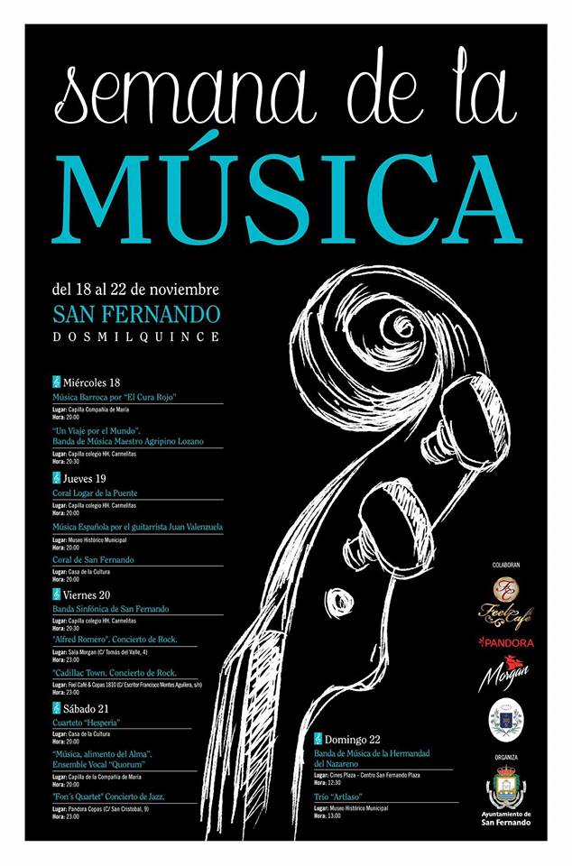 María con Alberto Domínguez y su orquesta de cámara 'Elcurarojo'. El grupo ha editado recientemente su trabajo 'Famous Concerts for Small Recorders'. Media hora más tarde la banda de música 'Agripino Lozano' recorrerá 'Un viaje por el mundo' en las Carmelitas, incluyendo en su concierto pasodobles o danzas rusas. El 19 de noviembre se dividirá en tres citas. Las Carmelitas, a las 20:00 horas, volverá a ser escenario, en esta ocasión de la Coral 'Logar de la Puente' -obras de polifonía folclórica, popular y bandas sonoras-. A la misma hora el guitarrista Juan Valenzuela, en el Museo, interpretará música española, y en la Casa de la Cultura, la coral de San Fernano celebrará su aniversario con música variada en colaboración con la Asociación Isleña de Fibromialgia. La Banda Sinfónica Municipal volverá el viernes 20 de noviembre a las Carmelitas, a partir de las 20:30. Ese mismo día el Rock inundará a partir las 23:00 horas la sala Morgan con Alfred Romero -composiciones propias y versiones del los años 50- y Feel Café, donde 'Calle Arauz' versionará temas de los 70. El sábado 21 de noviembre, el cuartero de cuerda 'Hesperia' formado por profesores de distintos conservatorios andaluces interpretarán clásicos a partir de las 20:00 horas en la Casa de la Cultura -Mozart o Haydn-. La Compañía de María acogerá por su parte el concierto 'Música, alimento del alma', de la mano de. Esta jornada concluirá con un concierto de jazz en 'Pandora Copas'. El domingo 22 de noviembre los Cines Plaza servirán como escenario para que la Academia de de Música del Nazareno interprete pasodobles y marchas procesionales, a las 12:30. Estrenan, por cierto, su nueva uniformidad. A las 13 actuará el trío de cuerda 'Artasso' con piezas clásicas y bandas sonoras, aunque también música más actual.