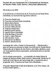 Sin embargo la Hermandad de Jesús de Medinaceli como tal hermandad, se fundó en realidad en el año 1945. Y su título oficial después de la citada fusión ha quedado como sigue: Real, Venerable y Seráfica Esclavitud y Antigua Archicofradía del Santísimo Sacramento, de la Inmaculada Concepción y Ánimas Benditas y Fervorosa Hermandad de Penitencia de Nuestro Padre Jesús Cautivo y Rescatado y María Santísima de la Trinidad (Medinaceli).