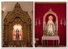 Su espléndido altar-retablo de estilo barroco y dorado está situado en el segundo lugar a continuación del altar de la hermandad de la Columna. Altar que tiene adosado en su frente la particularidad de poseer dos tramos de escaleras; uno de subida y otro de bajada con el fin de facilitar a los hermanos, fieles y devotos la posibilidad de que puedan subir si lo desean y besar los pies de tan Venerada Imagen.