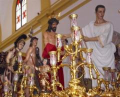 La primera imagen de Jesús del Ecce-Homo, que lució la hermandad se debe al escultor gaditano Miguel Laínez Capote, así como la autoría  de Pilatos y la de un soldado romano que figura en su Paso de Misterio. Pero hubo una segunda figura de Pilatos en esta ocasión obra de un escultor de Huelva, llamado, José Andrés Antúnez, que tampoco prosperó. Y  la última y definitiva talla de Jesús, obra del imaginero sevillano, Castillo Lastrucci, no obstante fue reformada también por nuestro escultor y hermano de la hermandad, Alfonso Berraquero García, imprimiéndole o dotándola quizás de  más dramatismo… Continuará…