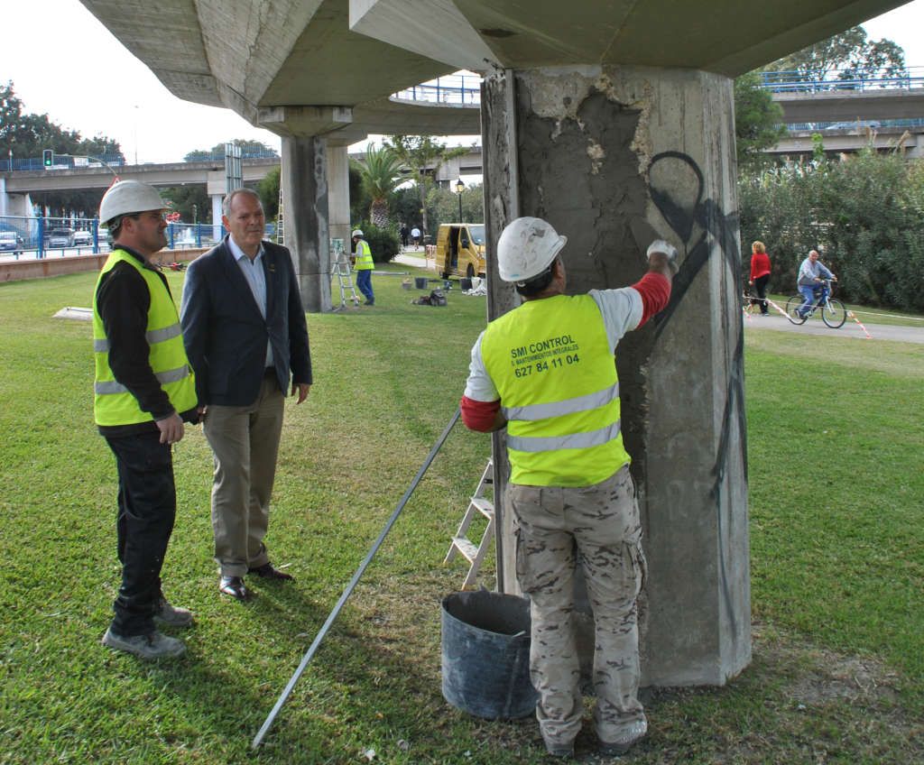 El Ayuntamiento lleva a cabo la reparación de doce pilares que sustentan los puentes de entrada y salida de Bahía Sur