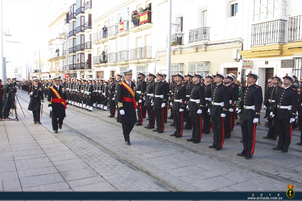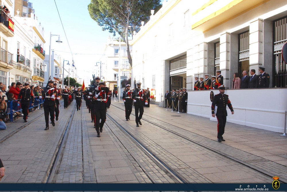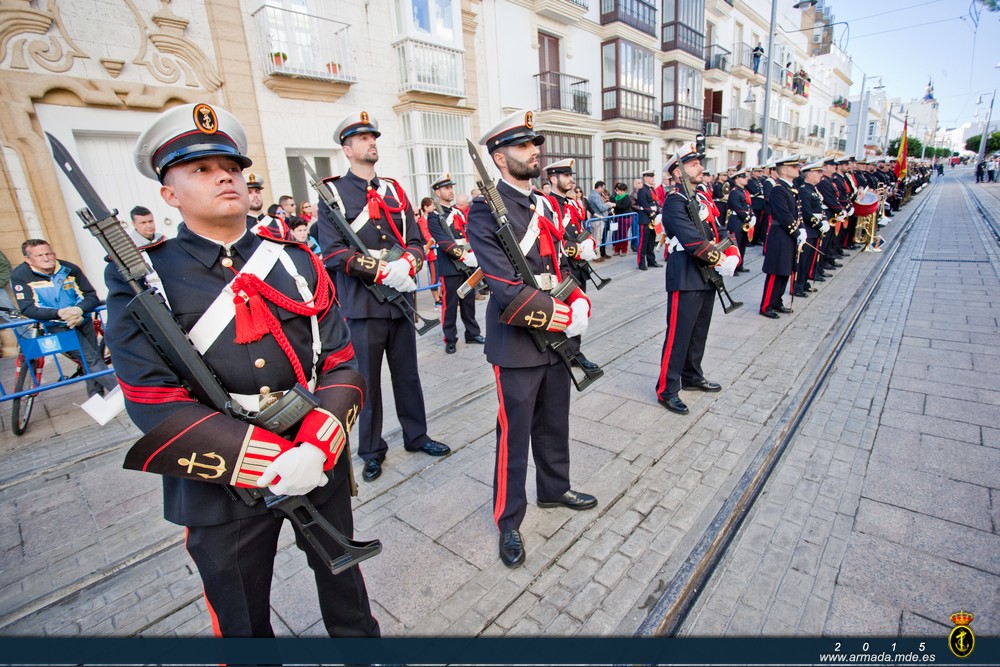 Ilma. Sra. Alcaldesa de la ciudad de San Fernando, Ilmo. Sr. Subdelegado del Gobierno en la provincia de Cádiz, Sres. Almirantes y Generales, Excelentísimas e Ilustrísimas autoridades, Sres. Oficiales, Suboficiales, Marineros, Soldados, personal civil al servicio del Ministerio de Defensa, compañeros: