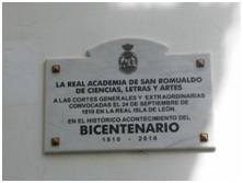 "La Real Academia de San Romualdo de Ciencias, Letras y Artes, a las Cortes Generales y Extraordinarias convocadas el 24 de septiembre de 1810 en la Real Isla de León, en el histórico acontecimiento del BICENTENARIO. 1810-2010".