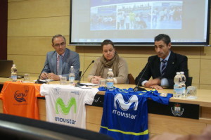La Gira Megacraks, que se celebra este viernes 5, de 10,30 a 12,30 horas, fue presentada en el Centro de Congresos. En esta gira participarán 800 escolares de la ciudad.. El acto ha contado con la presencia de Maite Lebrero, delegada de deportes, Jose Manuel Saorín, presidente del Movistar Inter FS y de Miguel Ángel Reyes, presidente del Isleño San Fernando FS.