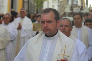 El obispo diocesano, Rafael Zornoza Boy presidió la ceremonia previa a la procesión, y procesionó tras la custodia junto con el arcipreste de San Fernando, Alfonso Gutiérrez Estudillo. Menos de una hora tardó en dar la vuelta la Cruz Parroquial al itinerario y dos horas en total, estuvo la procesión en la calle.