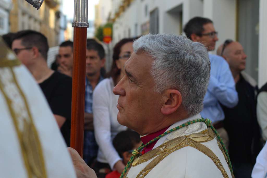 El obispo diocesano, Rafael Zornoza Boy presidió la ceremonia previa a la procesión, y procesionó tras la custodia junto con el arcipreste de San Fernando, Alfonso Gutiérrez Estudillo. Menos de una hora tardó en dar la vuelta la Cruz Parroquial al itinerario y dos horas en total, estuvo la procesión en la calle.