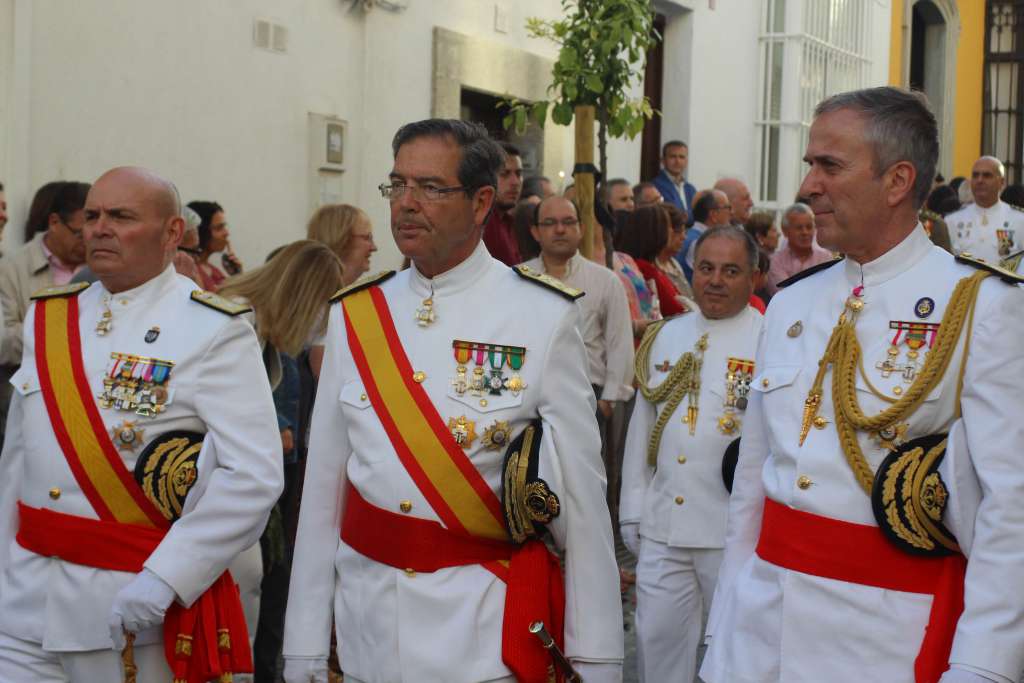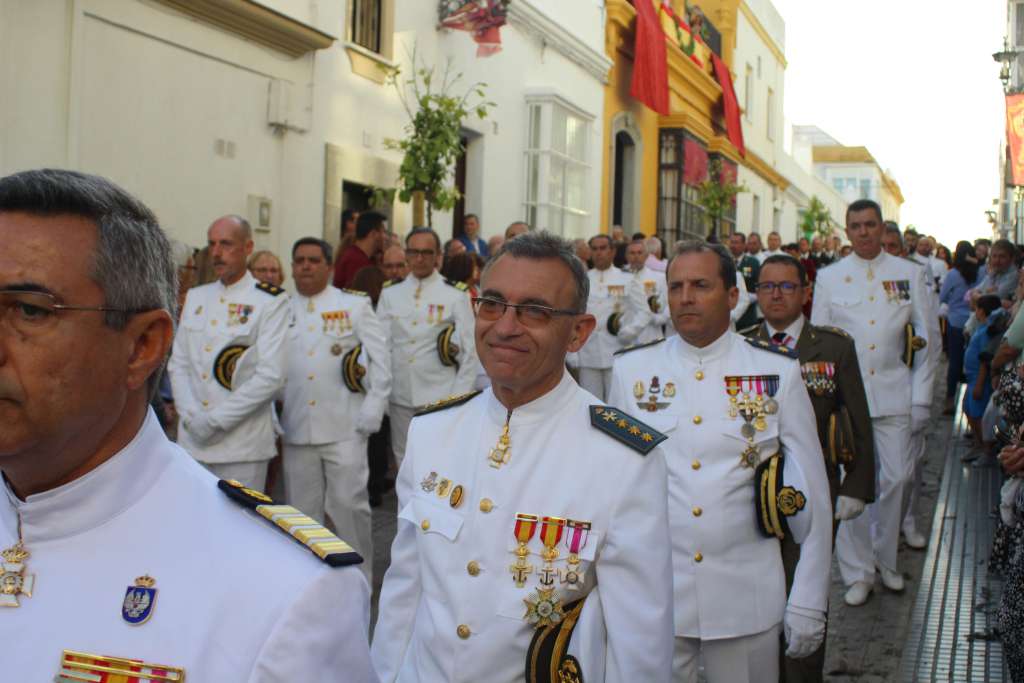 Fue una procesión de silencio, tan sólo roto por el sonido que aportaba la banda de Infantería de Marina y la Compañía de Honores que acompañaban a las autoridades. No hubo música ni tras el paso de la Patrona, ni del Patrón.