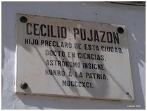 En la calle con su nombre, encontramos esta placa: "Cecilio Pujazón. Hijo Preclaro de esta ciudad, Docto en Ciencias, Astrónomo insigne. Honró a la patria. MDCCCXCI."