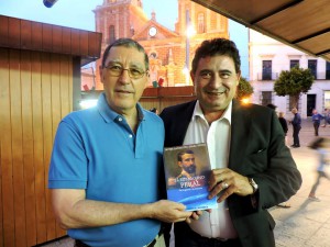 Javier Sanmateo (dcha.) junto a Juan Antonio Vijande (izda.) durante la firma de ejemplares.