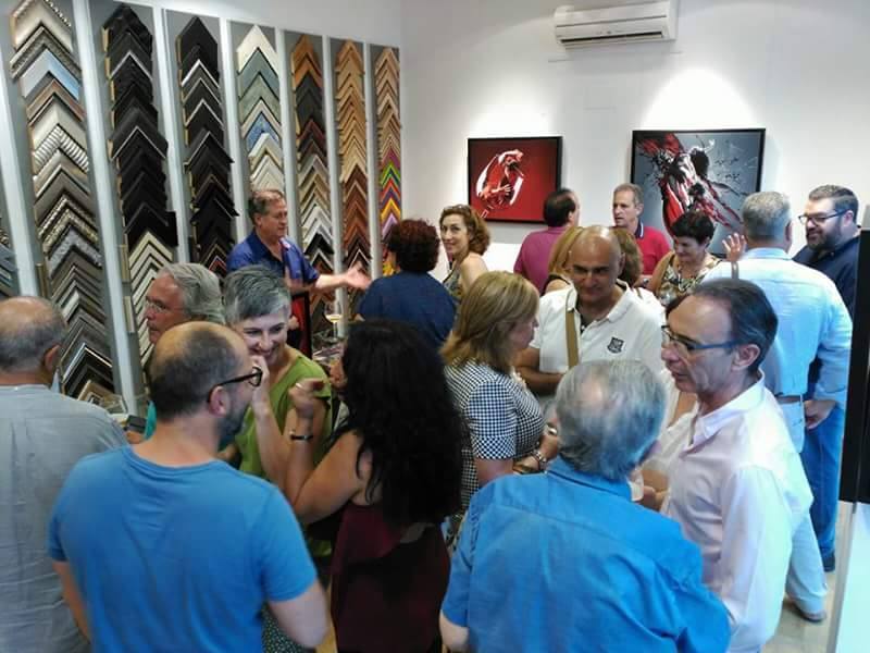 Díez son las obras expuestas con sumo gusto colocadas en las paredes de la tienda Quadro's, donde el color rojo predomina sobre todas las tonalidades, la belleza de sus musas, los rasgos andaluces, las pincelas de los detalles como; las gotas o las lágrimas en las copas, hicieron de la velada una noche de arte donde el vino como era de esperar no pudo faltar.
