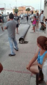 Una joven ha resultado herida con la caída de la farola, y hasta el lugar del suceso se han trasladado Policía Local, ambulancia y Bomberos. Los vecinos quieren que se revisen todas la bases de las farolas de la calle, pues tienen miedo a que otras puedan caer, con el peligro que supone.