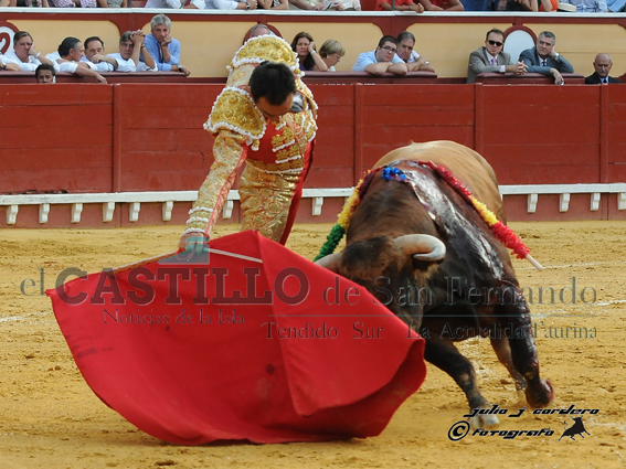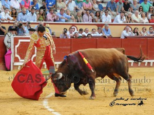 Manuel Jesús ‘El Cid’, Sangre de toro y oro con cabos flancos: ovación y oreja.