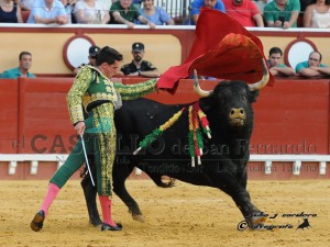 David Galván, verde y oro con cabos blancos. dos orejas y oreja.