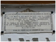 "El 2 de mayo de 1823 nació en esta casa el Excmo. Sor. D. Rafael Rodríguez de Arias y Villavicencio, ilustre general de la Armada y regenerador de la Marina Española.
